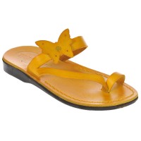 - sandale tip papuc cu deget si accesorizate cu un fluturas din piele